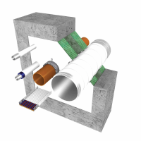 Protipožiarny tmel Polylack K, spevňujúci protipožiarny náter Polylack F, minerálna vata (150 kg/m3) 2 x 60 mm